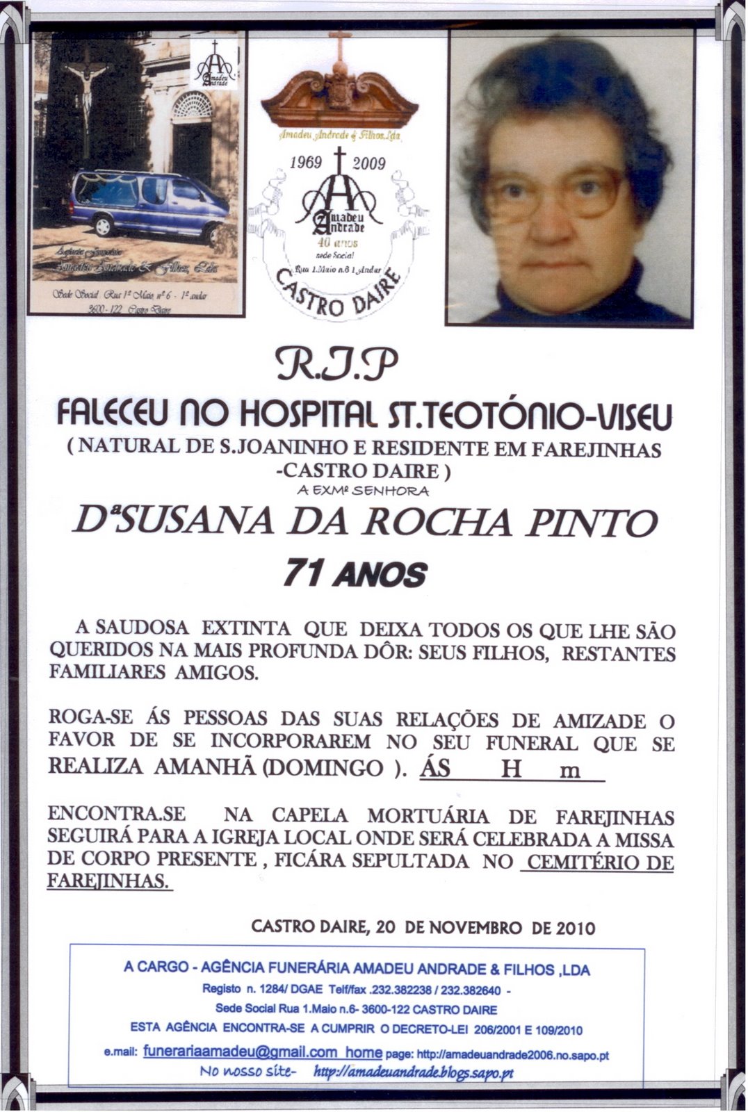 FUNERAL DE SUSANA DA ROCHA PINTO-71 ANOS