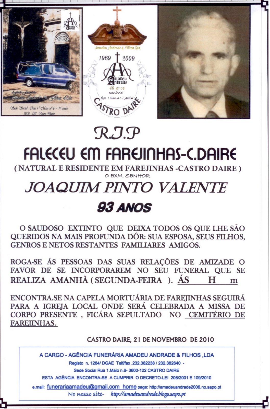 FUNERAL DE JOAQUIM PINTO VALENTE-93 ANOS