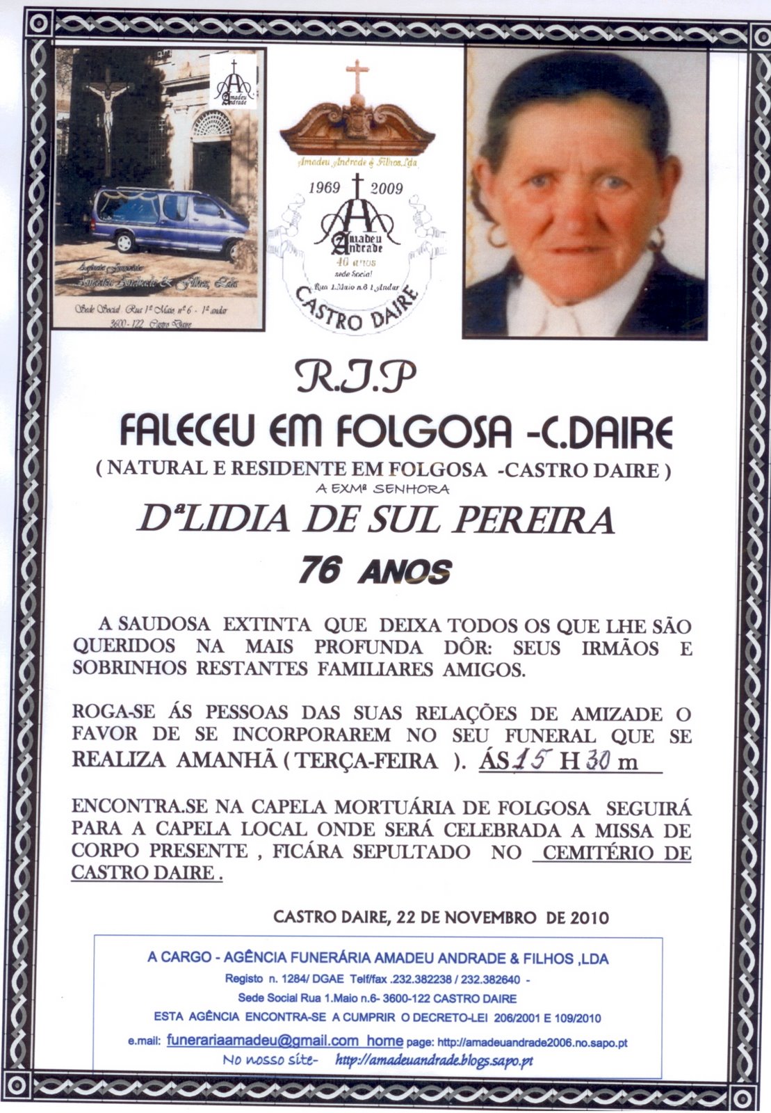 FUNERAL DE LIDIA DE SUL PEREIRA-76 ANOS