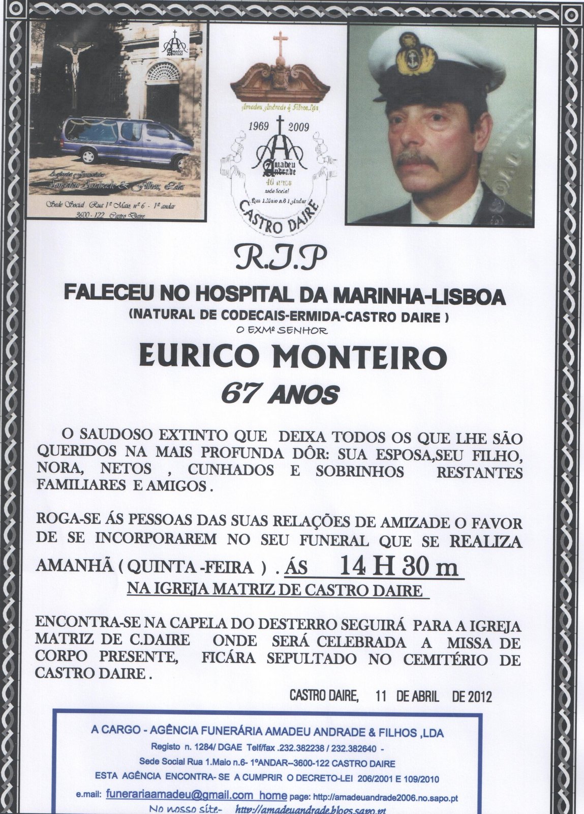 FALECIMENTO DE EURICO MONTEIRO-67 ANOS