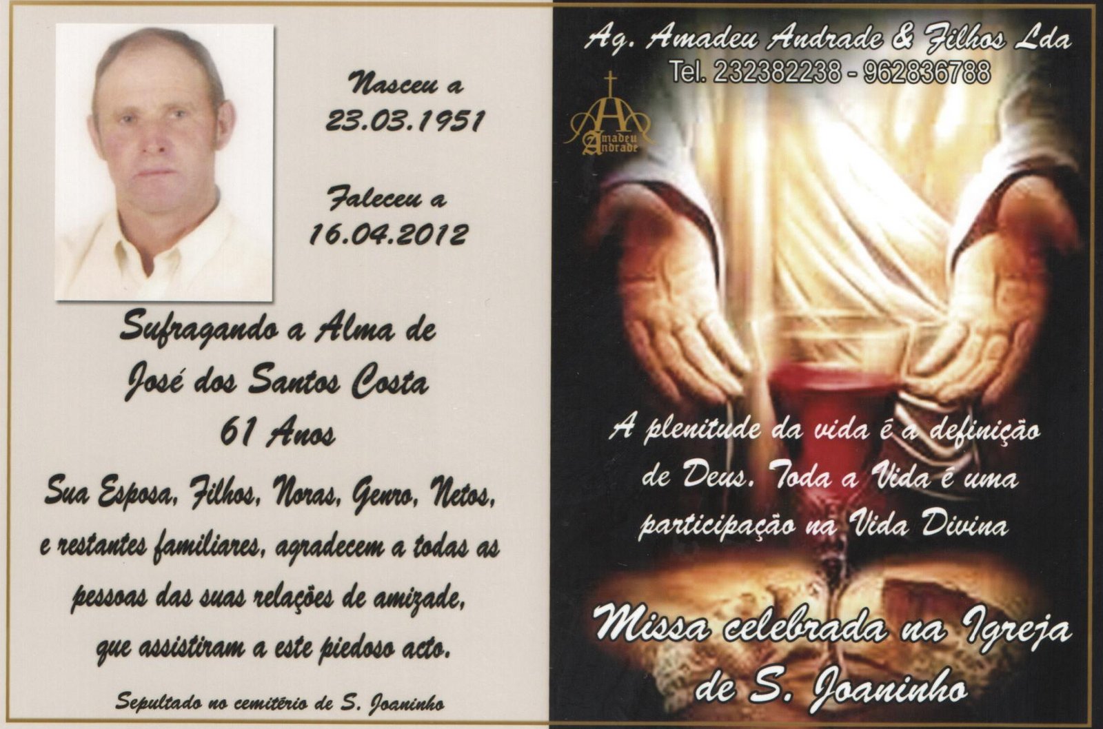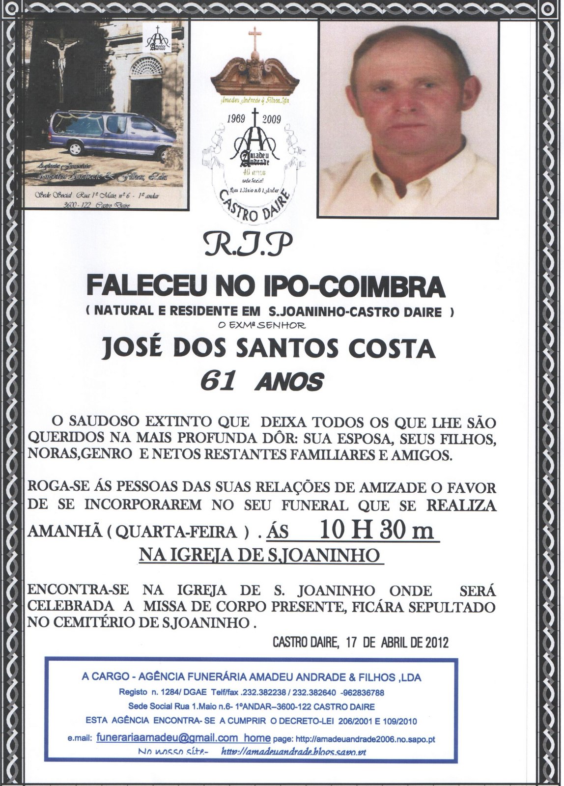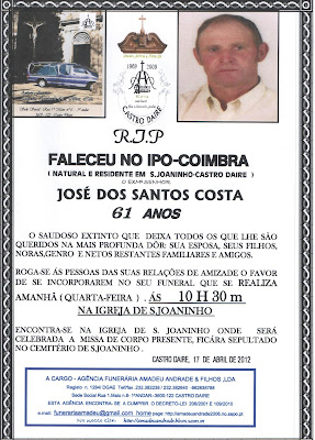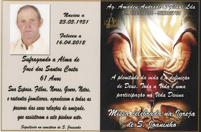 FALECIMENTO DE JOSÉ DOS SANTOS COSTA-61 ANOS