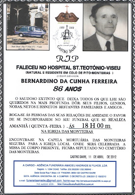 FUNERAL DE BERNARDINO DA CUNHA FERREIRA-86 ANOS