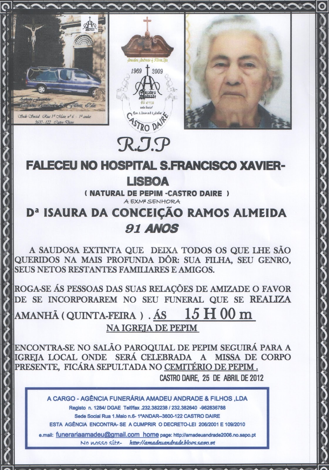 . FALECIMENTO DA Dª FRANCEL...