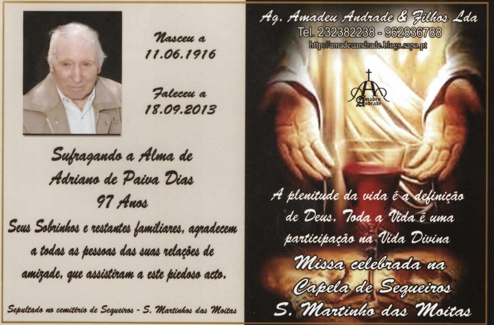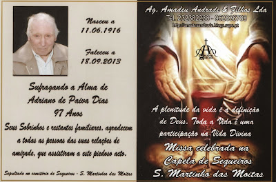 FALECIMENTO DO SR.ADRIANO PAIVA DIAS- 97 ANOS (SEQUEIROS)