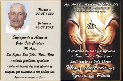 FALECIMENTO DO SR.JOÃO LUIS CARDOSO-93 ANOS (PICÃO)