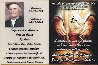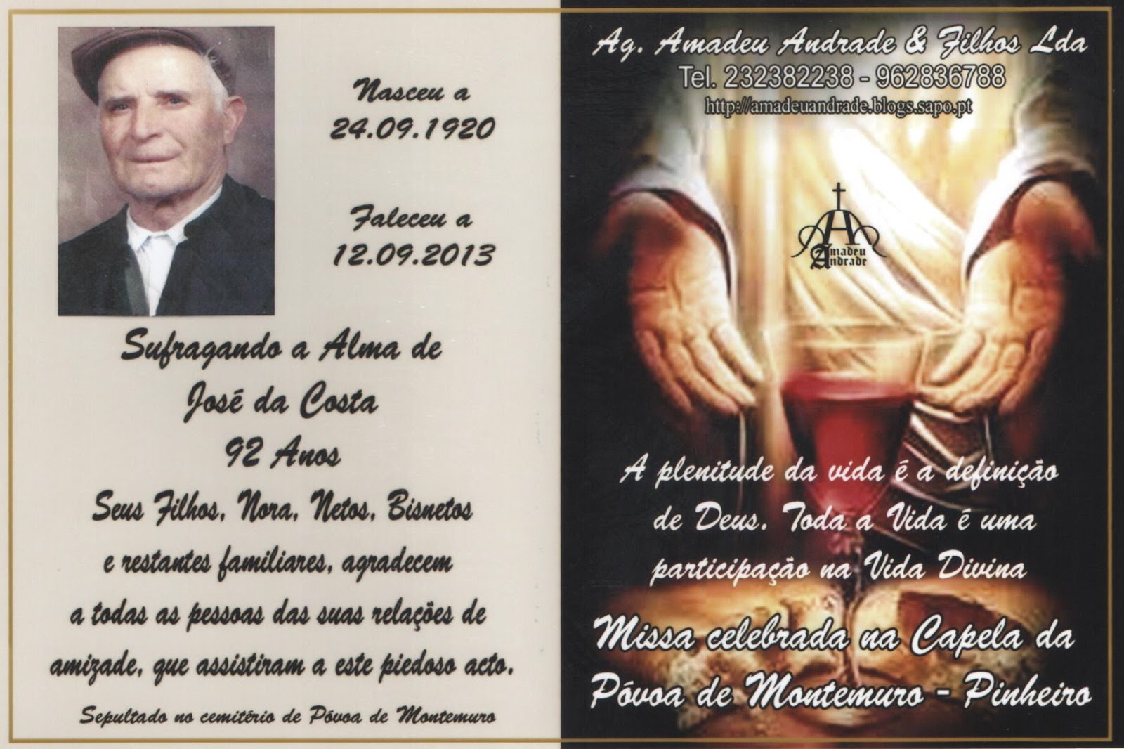 FALECIMENTO DO SR.JOSÉ DA COSTA-92 ANOS (PÓVOA DE MONTEMURO)