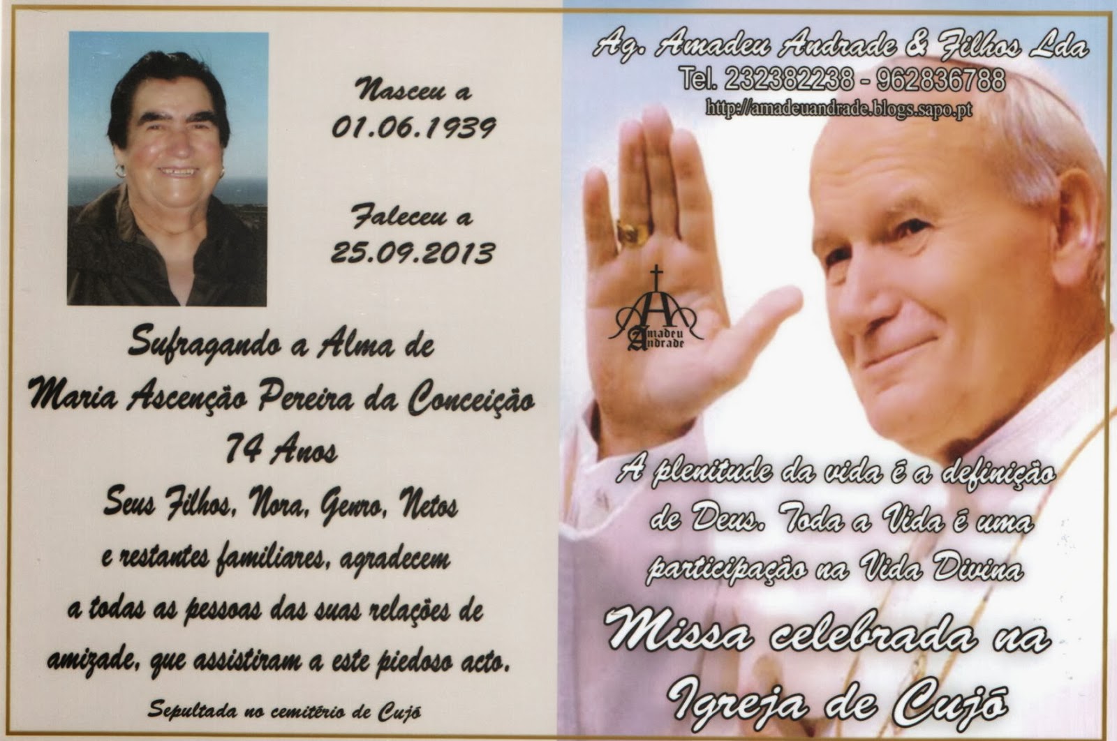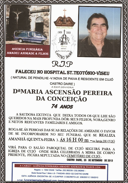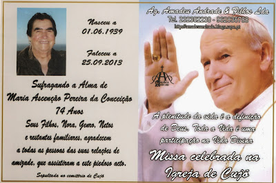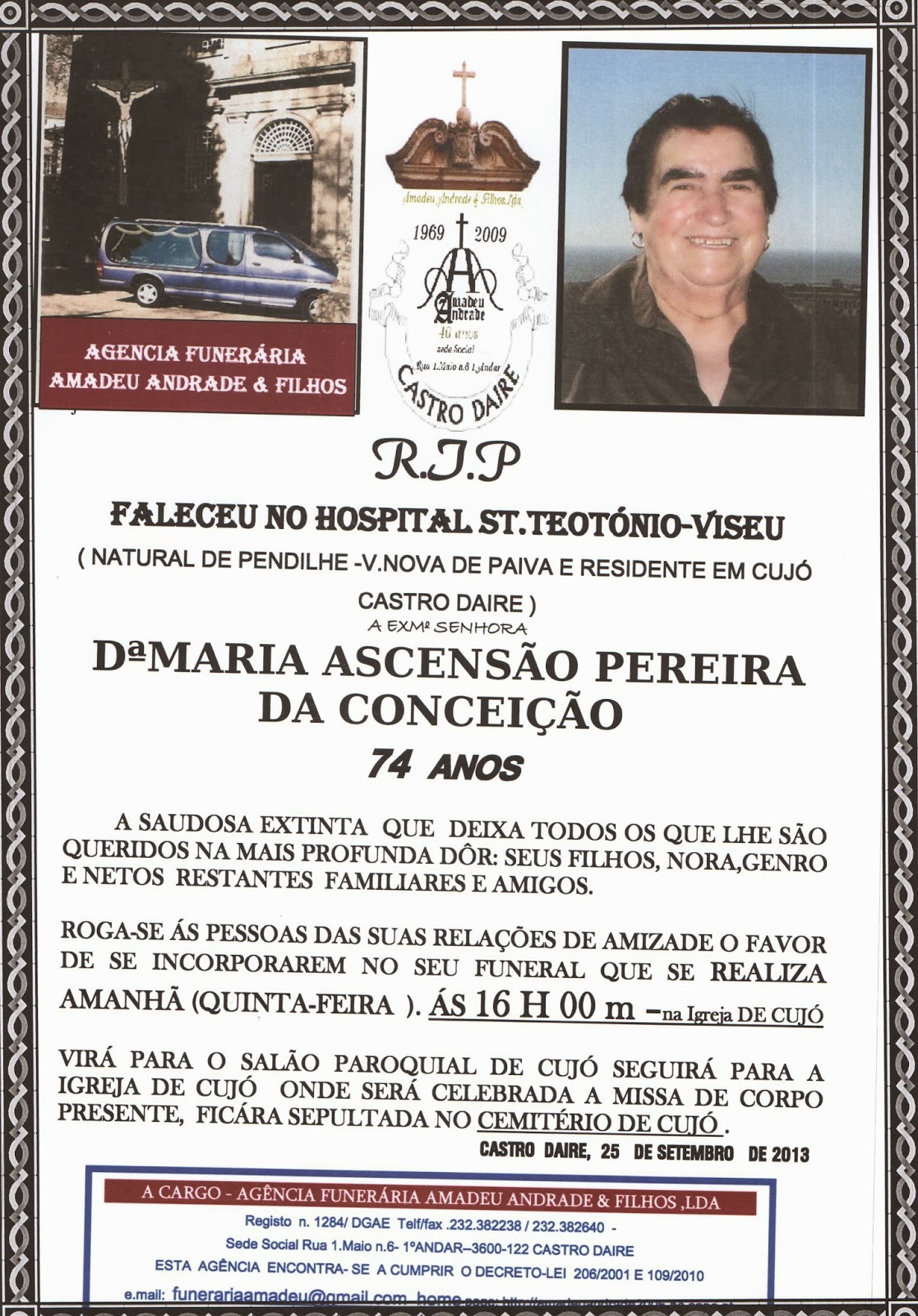 FALECIMENTO DA SRªDª MARIA ASCENSÃO PEREIRA DA CONCEIÇÃO-74 ANOS (CUJÓ)