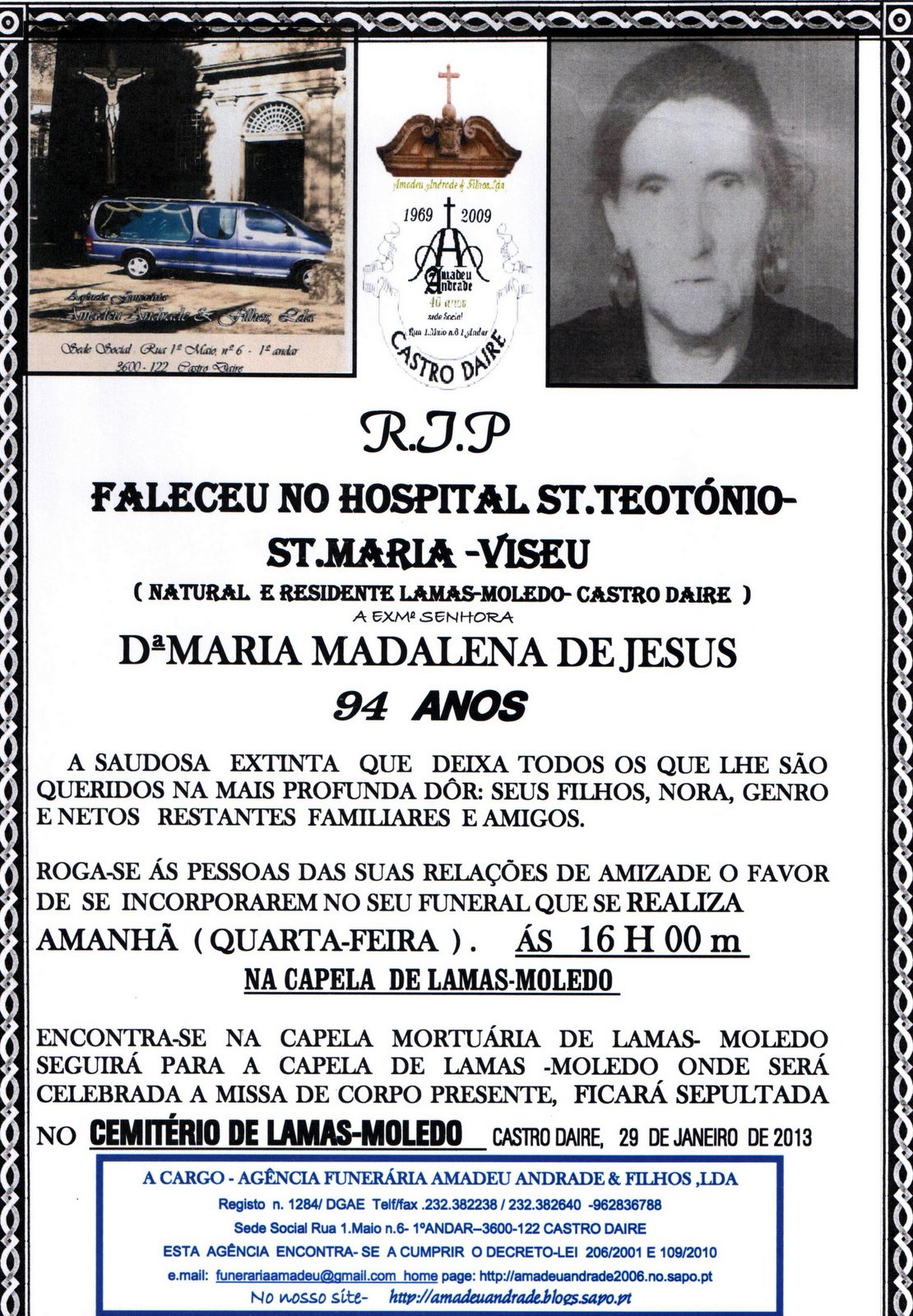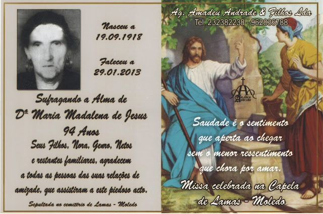 FALECIMENTO DA SRªDª MARIA MADALENA DE JESUS-94 ANOS (LAMAS-MOLEDO)