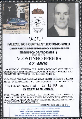 FALECIMENTO DE AGOSTINHO PEREIRA-87 ANOS