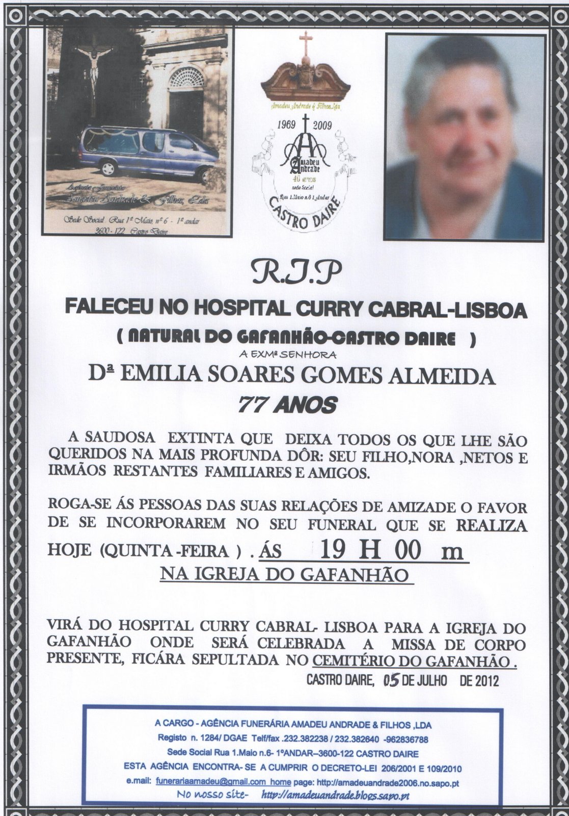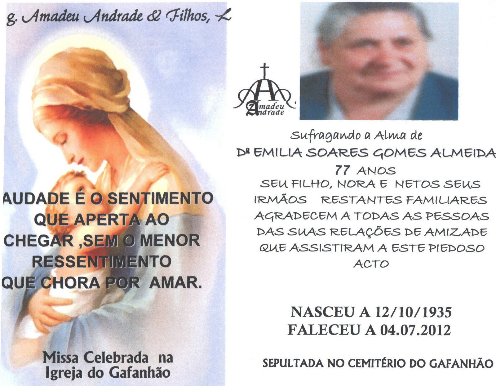 FALECIMENTO DE DªEMILIA SOARES GOMES ALMEIDA-77 ANOS