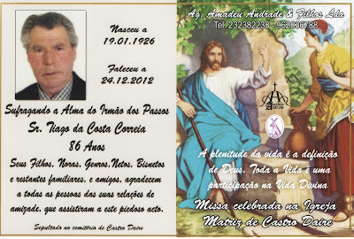FALECIMENTO DO SENHOR TIAGO DA COSTA CORREIA-86 ANOS (ARINHO)