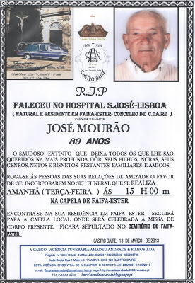FALECIMENTO DO SR.JOSÉ MOURÃO-89 ANOS (FAIFA-ESTER)
