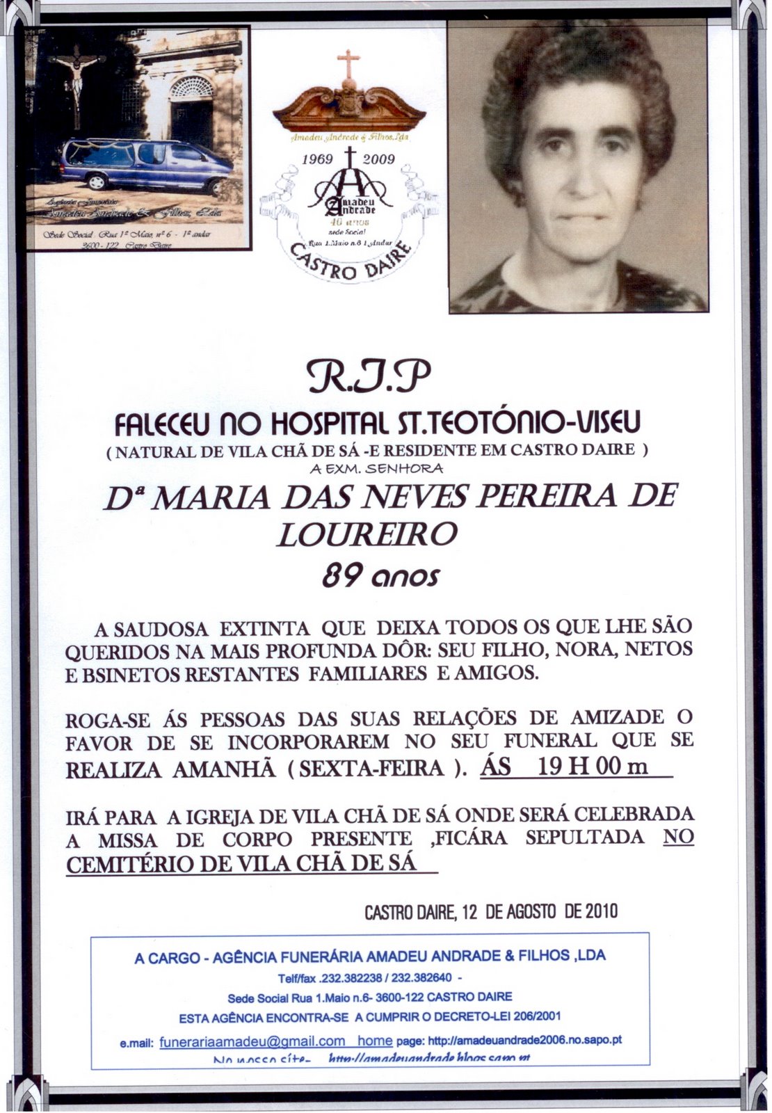 . FALECIMENTO DA SRªDª CRIS...